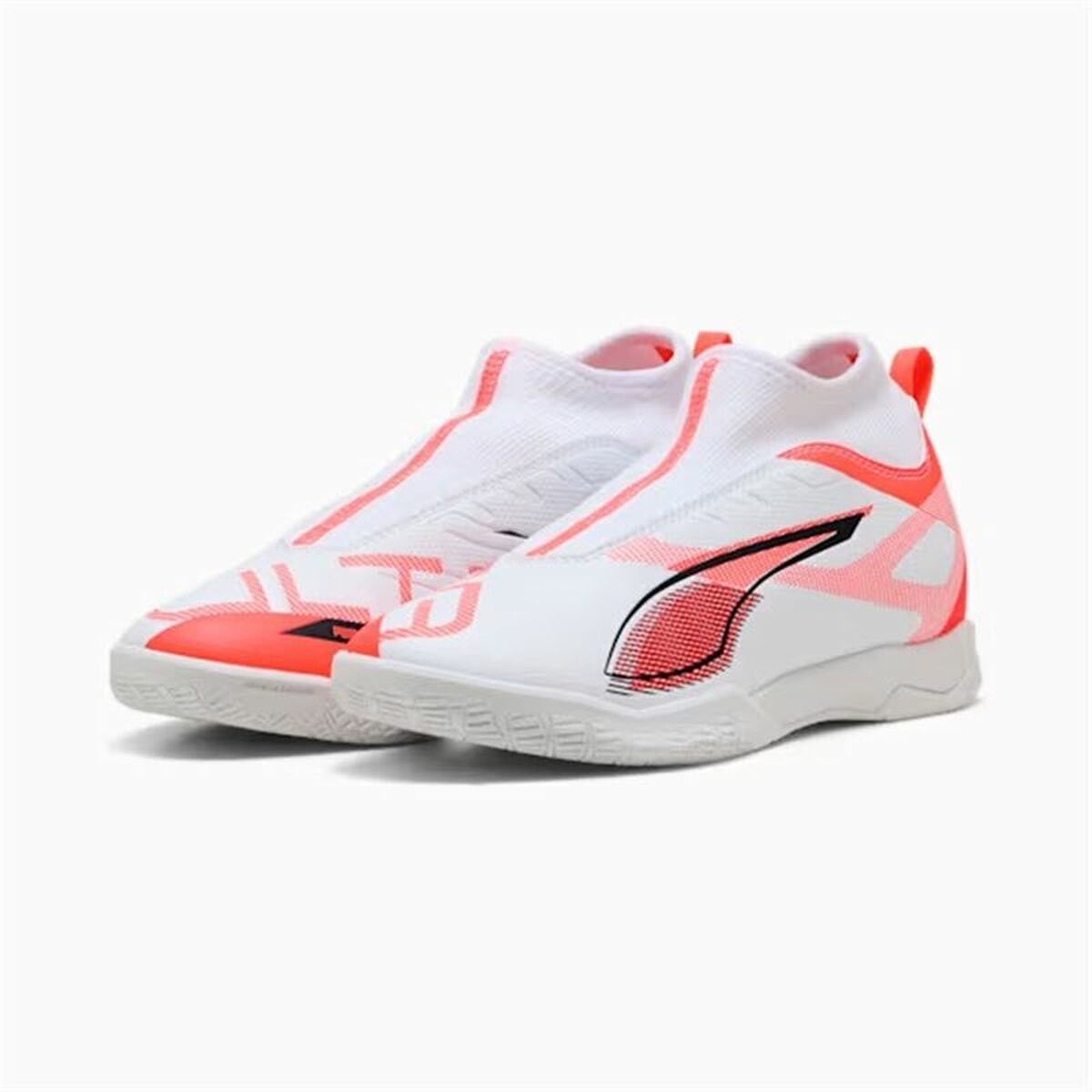 As Chuteiras de Futsal Puma Ultra 5 Match+ Ll It para crianças combinam um design desportivo com características técnicas que atendem às necessidades específicas do futsal infantil, embora com traços adaptados também para o público adulto, conforme a tipologia. Estas chuteiras de futsal apresentam um cabedal em malha leve que proporciona excelente respirabilidade e conforto, mantendo os pés frescos durante o jogo intenso. A sua cor branca com detalhes em preto oferece um estilo versátil e fácil de combinar, preservando a essência clássica do calçado desportivo. Contam com uma sola antimarcas, especialmente desenhada para oferecer aderência ótima em superfícies interiores sem deixar marcas, requisito fundamental para a prática do futsal em pavilhões. A combinação de leveza, resistência e aderência assegura desempenho eficaz em movimentos rápidos e mudanças de direção. Apesar de ser inicialmente destinado a crianças, o modelo partilha características técnicas encontradas em chuteiras para adultos, evidenciando qualidade e durabilidade superiores na sua categoria. Esta linha Puma Ultra 5 posiciona-se como uma opção funcional e técnica, ideal para jovens atletas que procuram um calçado que responda eficazmente às exigências do futsal. Em conjunto, estas chuteiras oferecem uma solução equilibrada entre conforto, design e funcionalidade para a prática desportiva em interiores.