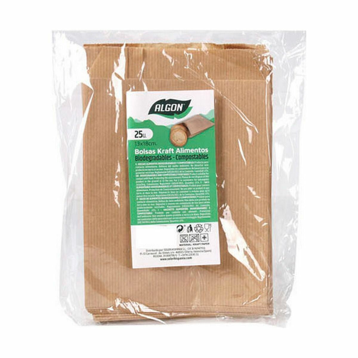Saco Reutilizável para Alimentos Algon Papel kraft 13 x 18 cm Descartáveis 25 Peças (36 Unidades)